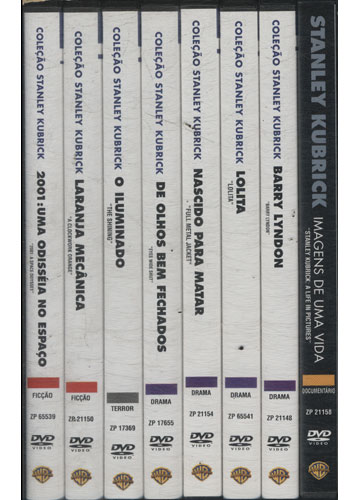 Incluídos os Filmes: - 2001: Uma Odisseia no Espaço - Laranja Mecânica - O Iluminado - De Olhos Bem Fechados - Nascido para Matar - Lolita - Barry Lyndon - Stanley Kubrick - Imagens de Uma Vida
