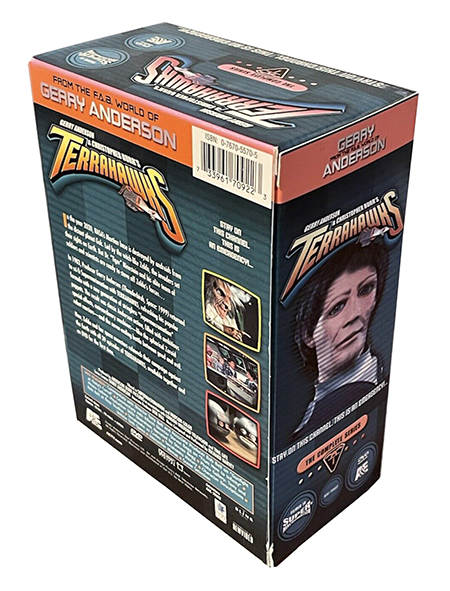 Extras: COMMENTARY WITH DIRECTOR TONY BELL AND ASSOCIATE PRODUCER BOB BELL ON GUNFIGHT AT OAKY'S CORRAL COMMENTARY WITH EFFECTS DIRECTOR STEVEN BEGG ON FROM HERE TO INFINITY PHOTO GALLERY PRODUCTION STILLS SLIDESHOW NARRATED BY STEVEN BEGG PHOTO GALLERY TONY AND BOB BELL AT BRAY STUDIOS TERRAHAWKS 10 CODES TERRAHAWKS HISTORY CHARACTER DESCRIPTIONS VEHICLE TECH SPECS INTERACTIVE MENUS SCENE SELECTION