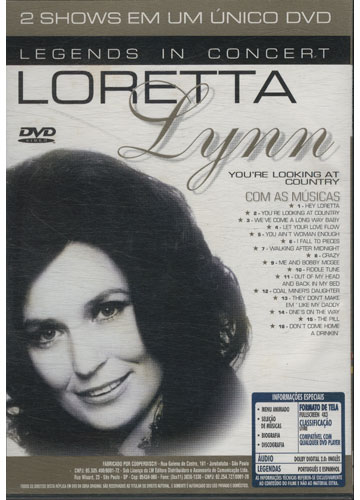 1. Heartbreak Hotel 2. Crazy 3. Funny How Time Slips Away 4. White Lightning 5. My Adobe Hacienda 6. My Cricket And Me 7. Trouble In Mind 8. Will The Circle Be Unbroken 9. It´s Not Supposed To Be That Way 10. Wabash Cannonball 11. South Of The Border 12. Always 13. He Taught Me How To Cry 14. One For My Baby and One More For The Road 15. Mystery Train 16. Roll In My Sweet Baby´s Arms 17. Final Jam Loretta Lynn 01. Hey Loretta 02. You're looking at country 03. We've come a long way baby 04. Let your love flow 05. You ain't woman enough 06. I Fall To Pieces 07. Walking After Midnight 08. Crazy 09. Me and Bobby Mcgee 10. Fiddle Tune 11. Out Of My Head 12. Coal Miner's Daughter 13. They Don't Make Em ' Like My Daddy 14. One's on the Way 15. The Pill 16. Don't Come Home a Drinkin'