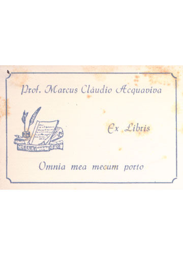Exemplar encadernado com sua capa original e em bom estado de conservação. Apresenta amarelamento natural uniforme com alguns pontos de oxidação esparsos. A capa original contém restauros nos cantos, enquanto a encadernação exibe uma fotografia do antigo dono colada à antecapa. Na página de rosto há assinatura datada à caneta e etiqueta adesiva de posse.