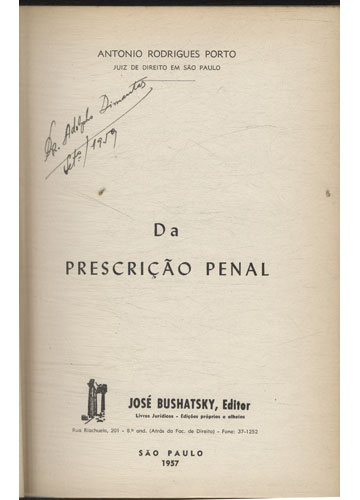 A presente obra encontra-se em bom estado de conservação, contém, apenas, algumas manchas amareladas causadas pelo tempo, desgastes na capa e lombada e anotações a caneta e marcações a carimbo nas primeiras páginas.