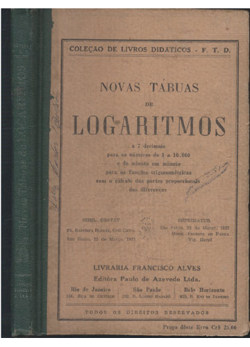 a 7 decimais para os numeors de 1 a 10.000 e de minuto em minuto para as funções trigonométricas com o cálculo das partes proporcionais das diferenças