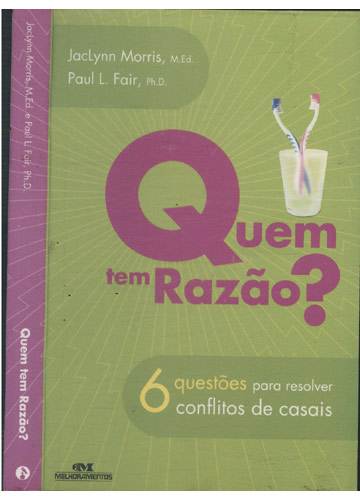 Chegar a um acordo e solucionar um desentendimento com o parceiro nem sempre depende de estar ou não com a razão. JacLynn Morris e Paul L. Fair apresentam um método eficaz composto de seis questões que vão ajudá-la a solucionar um conflito sem brigar, recuar ou fugir da situação. 'Quem tem razão?' combina instruções simples com relatos fascinantes de pessoas que aprenderam com este livro a resolver a maioria dos problemas que um casal enfrenta - desde os mais corriqueiros, como problemas financeiros, ciúme egoísmo, educação dos filhos e falta de intimidade, até assuntos mais delicados, como doenças e infidelidade.