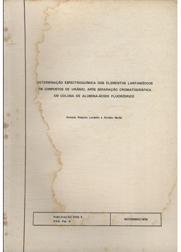 Publicação IPEN 06 - Determinação Espectroquímica dos Elementos Lantanídicos em Compostos de Urânio Após Separação Cromatográfica em Coluna de Alumina-Ácido Fluorídrico