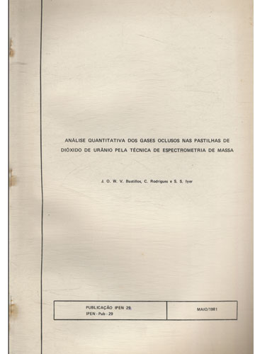 Publicação IPEN 29 - Análise Quantitativa dos Gases Oclusos nas Pastilhas de Dióxido de Urânio Pela Técnica de Espectrometria de Massa