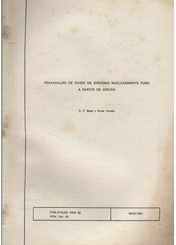Publicação IPEN 26 - Preparação de Óxido de Zircônio Nuclearmente Puro a Partir de Zircão
