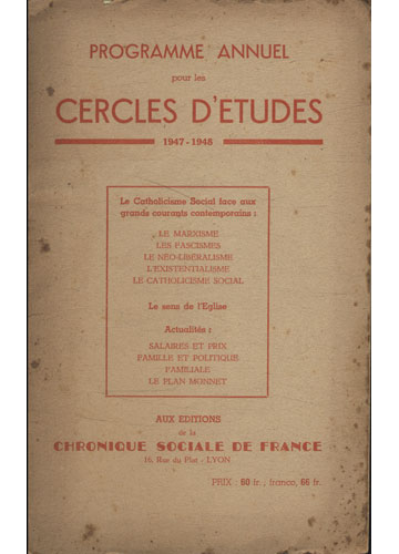 Programme Annuel pour les Cercles D'Etudes - 1947-1948 - Le Catholicisme Social Face aux Grands Courants Contemporains / Le Sens de L'Eglise