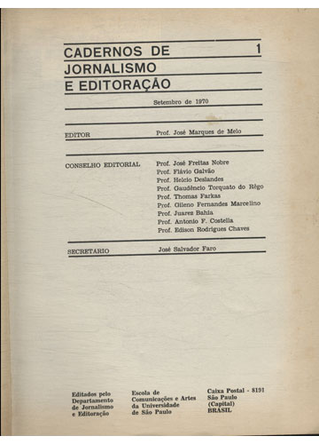 Indice: Número 1 - Setembro de 1970 - 60 páginas Número 2 - Dezembro de 1970 - 56 páginas